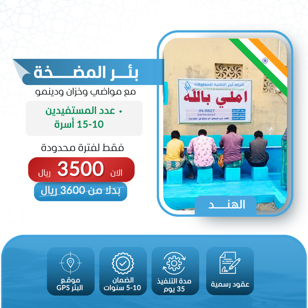 💙 ساهم الآن في حفر بئر بالمضخة في الهند مع شركة آبار التقنية، وامنح الحياة للمحتاجين بمياه نظيفة تدوم لسنوات!